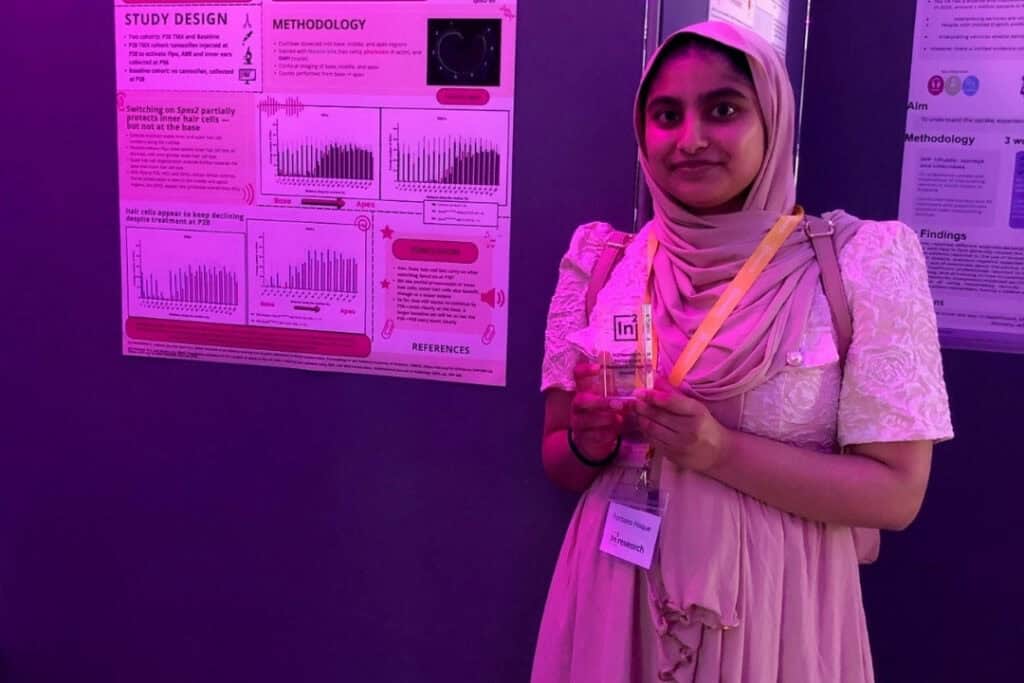 In summer 2025, RNID partnered with In2scienceUK to offer students hands-on experience in hearing research through the In2research programme. Farzana Haque spent her placement in Professor Karen Steel’s lab at King’s College London, exploring the genetics of deafness.